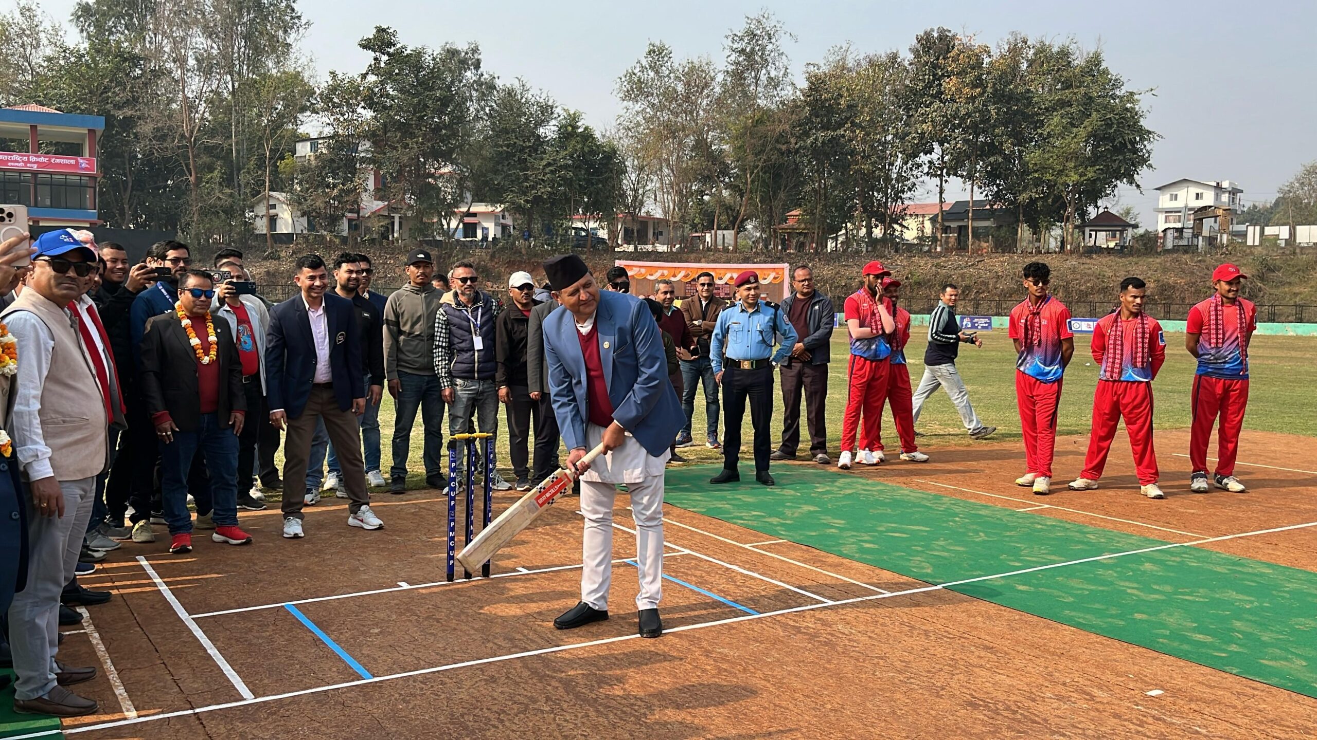दाङ- प्रधानमन्त्री कप एकदिवसीय पुरुष राष्ट्रिय क्रिकेट प्रतियोगिता सुरु भएको छ । लुम्बिनी प्रदेशका मुख्यमन्त्री चेतनारायण आचार्यले प्रतियोगिताको उद्घाटन गर्नु भएको छ । देउखुरी अन्तर्राष्ट्रिय क्रिकेट मैदानमा मुख्यमन्त्री आचार्यले ब्याटिङ गर्नु भएको थियो भने क्रिकेट संघका अध्यक्ष चतुरबहादुर चन्दले बलिङ गरेर प्रतियोगिताको शुभारम्भ गर्नु भयो ।