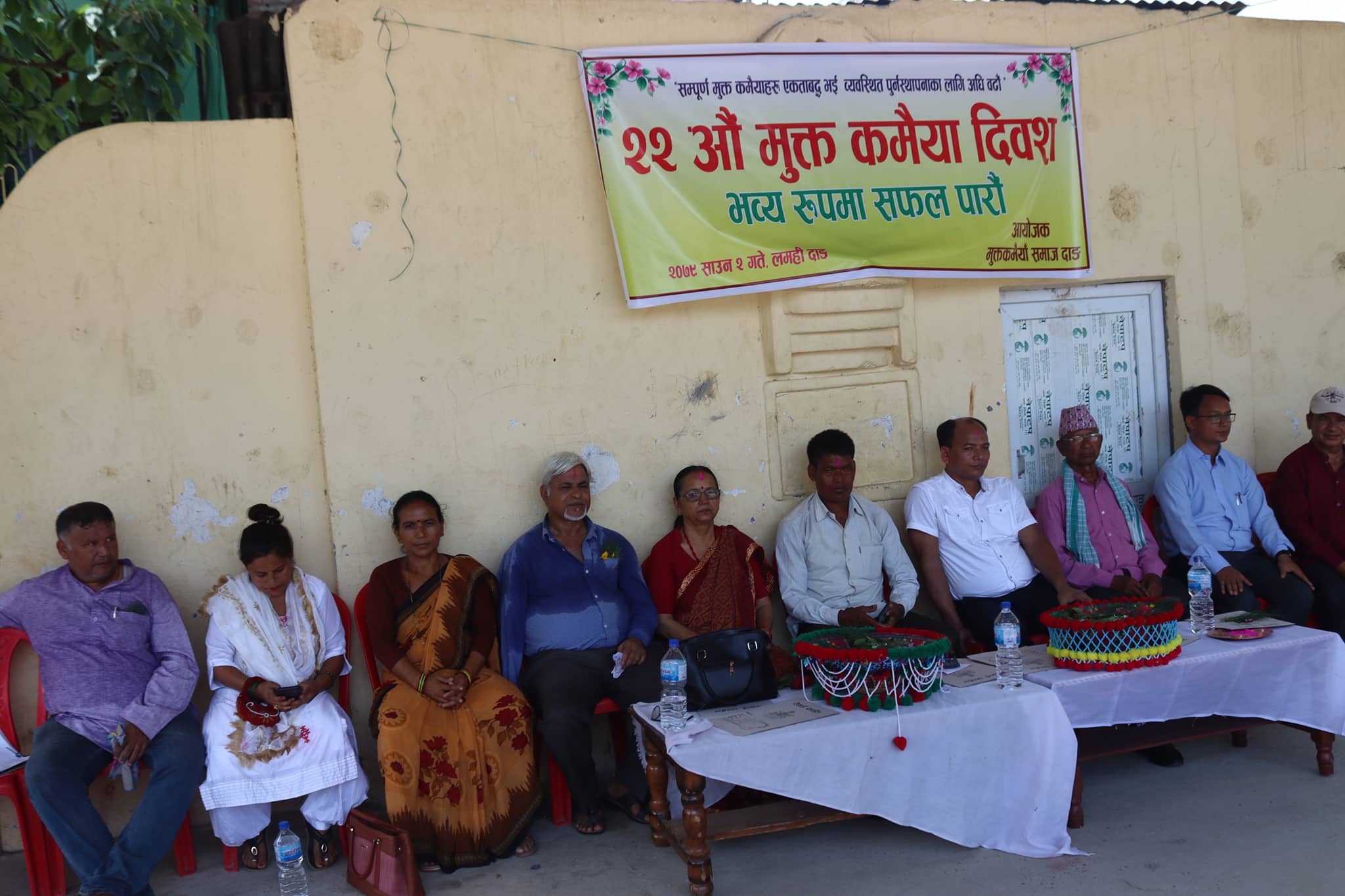 दाङ । कमैया मुक्त भएको २२ बर्ष पुगेको छ । तत्कालीन सरकारले २०५७ साल साउन २ गते कमैया मुक्तको घोषणा गरेको थियो । तर, कमैया मुक्त घोषणा भएको लामो समय हुदा पनि कमैया पुर्नस्थापना हुन नसकेको भन्दै हरेक बर्ष मुक्ती दिवस आन्दोलनको रुपमा मनाउने गरिएको छ ।