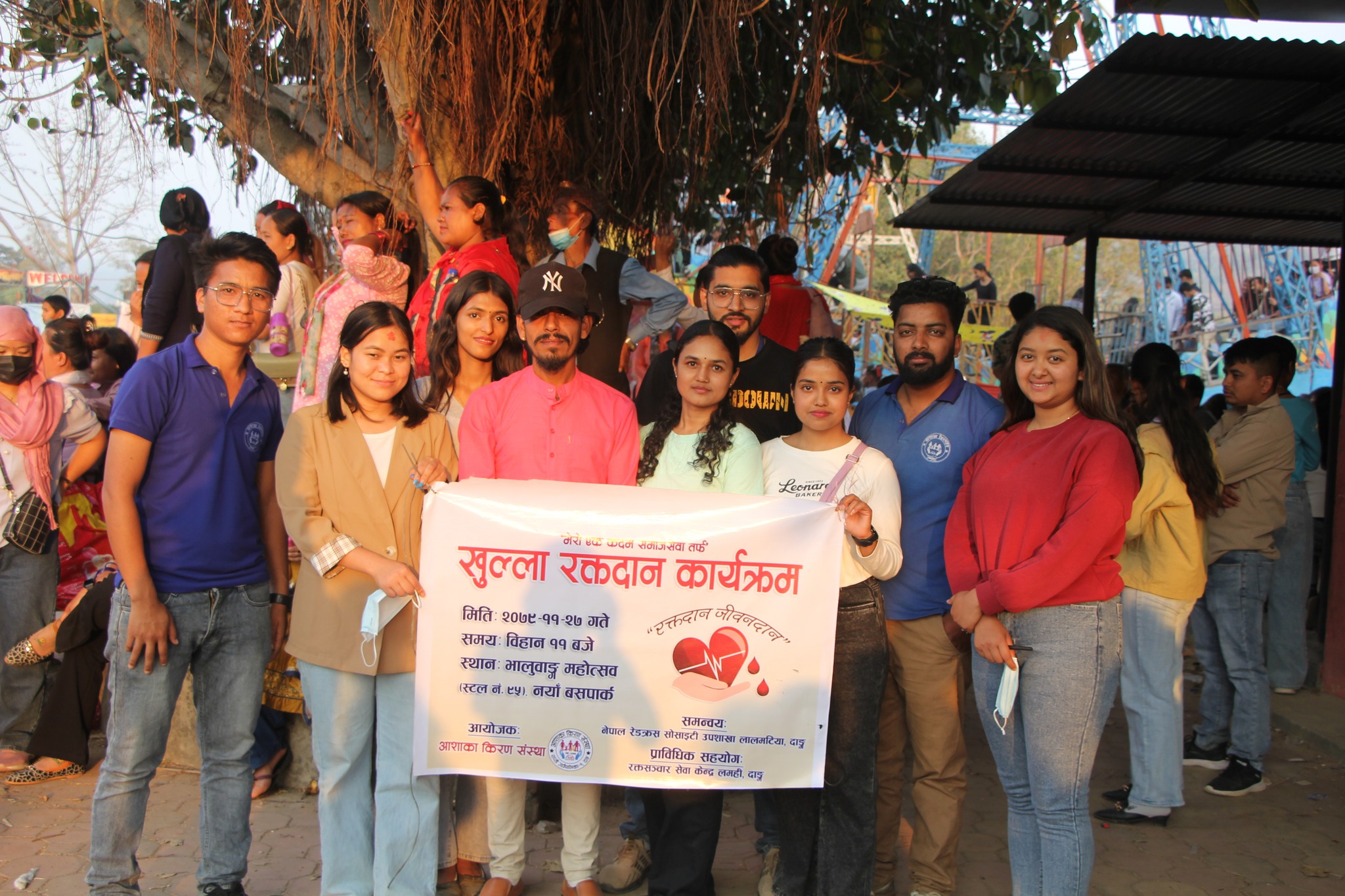 राप्ती उद्योग वाणिज्य संघ भालुवाङले फागुन १९ गते देखि चैत १ गते सम्म निमार्णाधिन बसपार्क भालुवाङमा आयोजना गरेको पाँचौं राप्ती लुम्बिनी प्रादेशिक व्यापारी, पर्यटन तथा कृषि महोत्सवमा शनिवार आशाका किरण संस्थाले नेपाल रेडक्रस सोसाइटी उपशाखा लालमटियाको समन्वय तथा रक्त सञ्चार सेवा केन्द्र लमहीको प्राविधिक सहयोगमा खुल्ला रक्तदान कार्यक्रम सम्पन्न गरेको हो ।