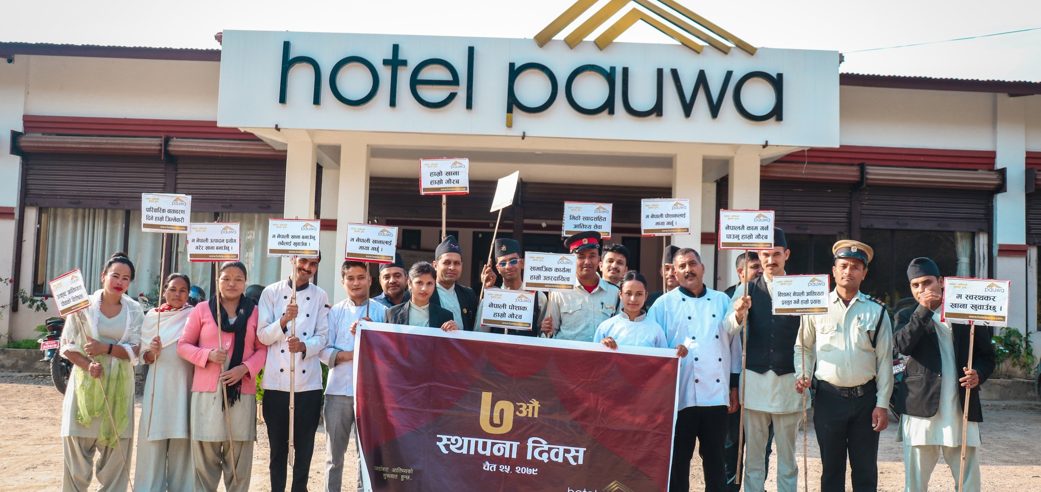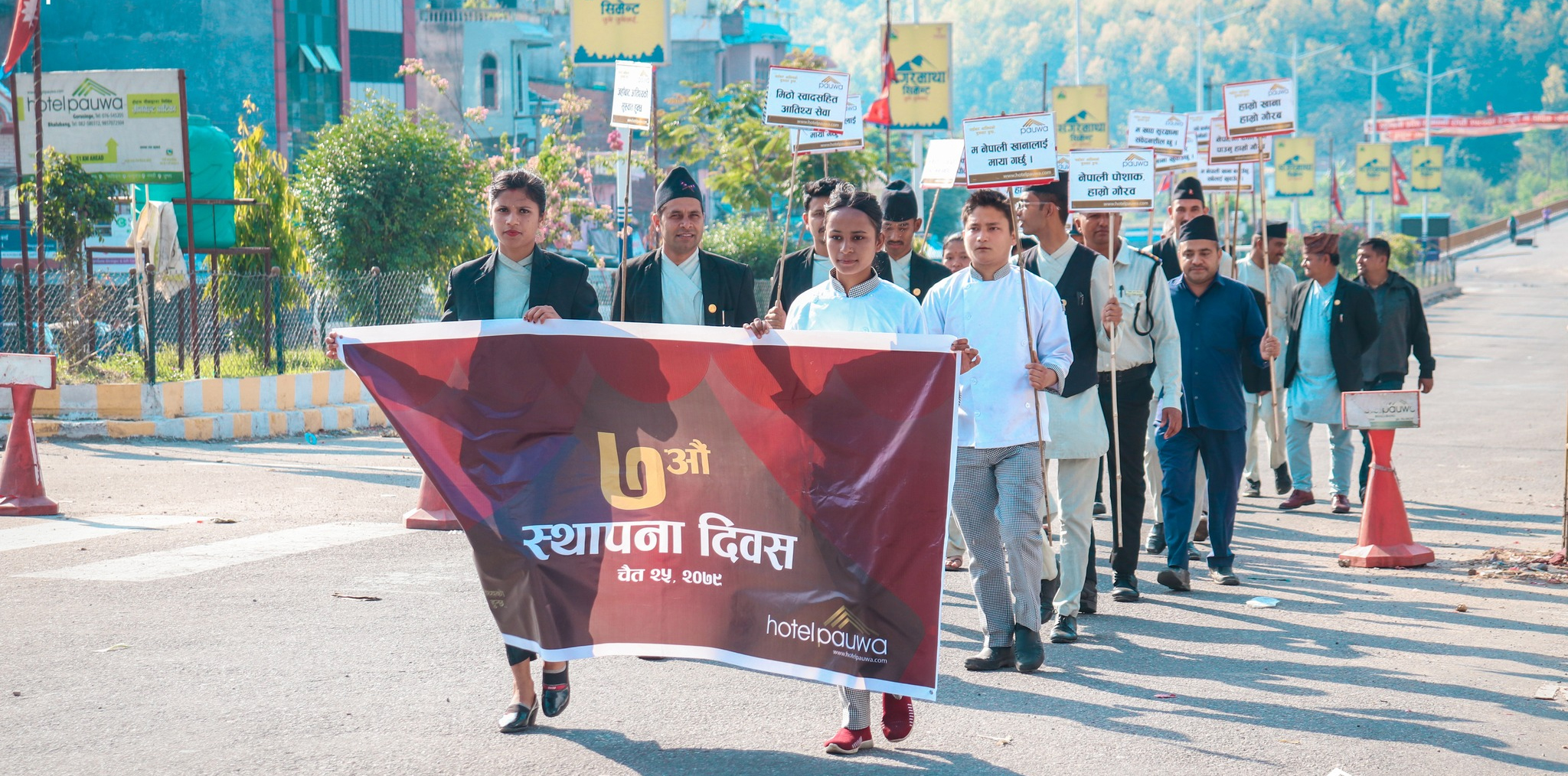 स्थापना दिवस मनाउन पौवामा आवद्ध कर्मचारी, लगानीकर्ता र शुभचिन्तकहरु नेपाली खना हाम्रो गौरव, नेपाली खानामा नेपाली उत्पादन प्रयोग गरौं, नेपाली पोशाक हाम्रो पहिचान, म नेपाली खाना मन पराउँछु, म नेपाली उत्पादन प्रयोग गर्छु जस्ता नारा लेखिएका प्लेकार्ड बोकेर प्रभातफेरिमा निस्केका थिए ।