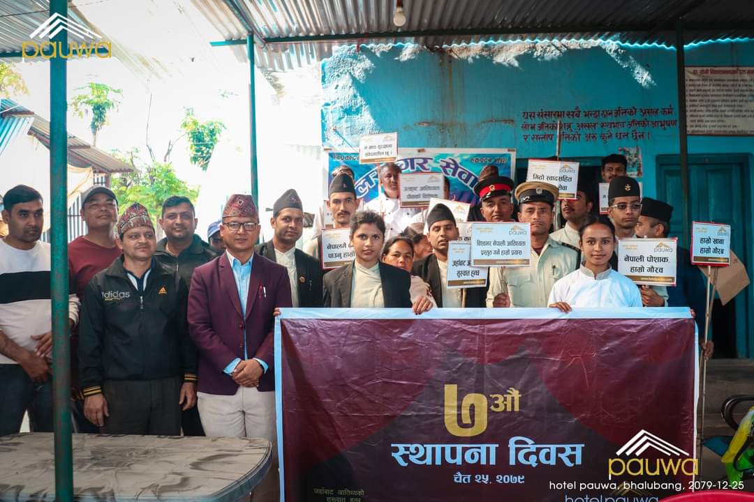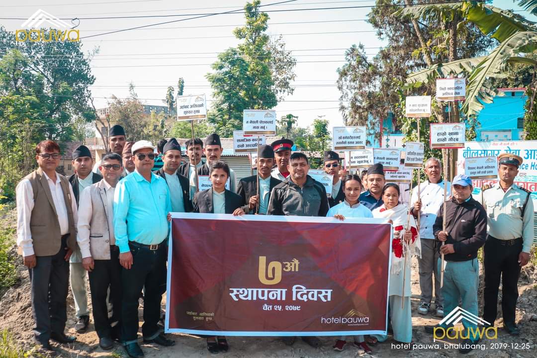 देउखुरी । होटल पौवाले आफ्नो स्थापनाको ७ औ वर्ष ‘जहाँबाट आतिथ्यताको शुरुवात हुन्छ…’ भन्ने नाराका साथ बिबिध कार्यक्रम गरेर मनाएको छ । देशभर ११ वटा शाखा रहेको पौवाले सबै शाखाहरुमा छुट्टाछुट्टै कार्यक्रम राखेर स्थापना दिवस मनाएको छ ।