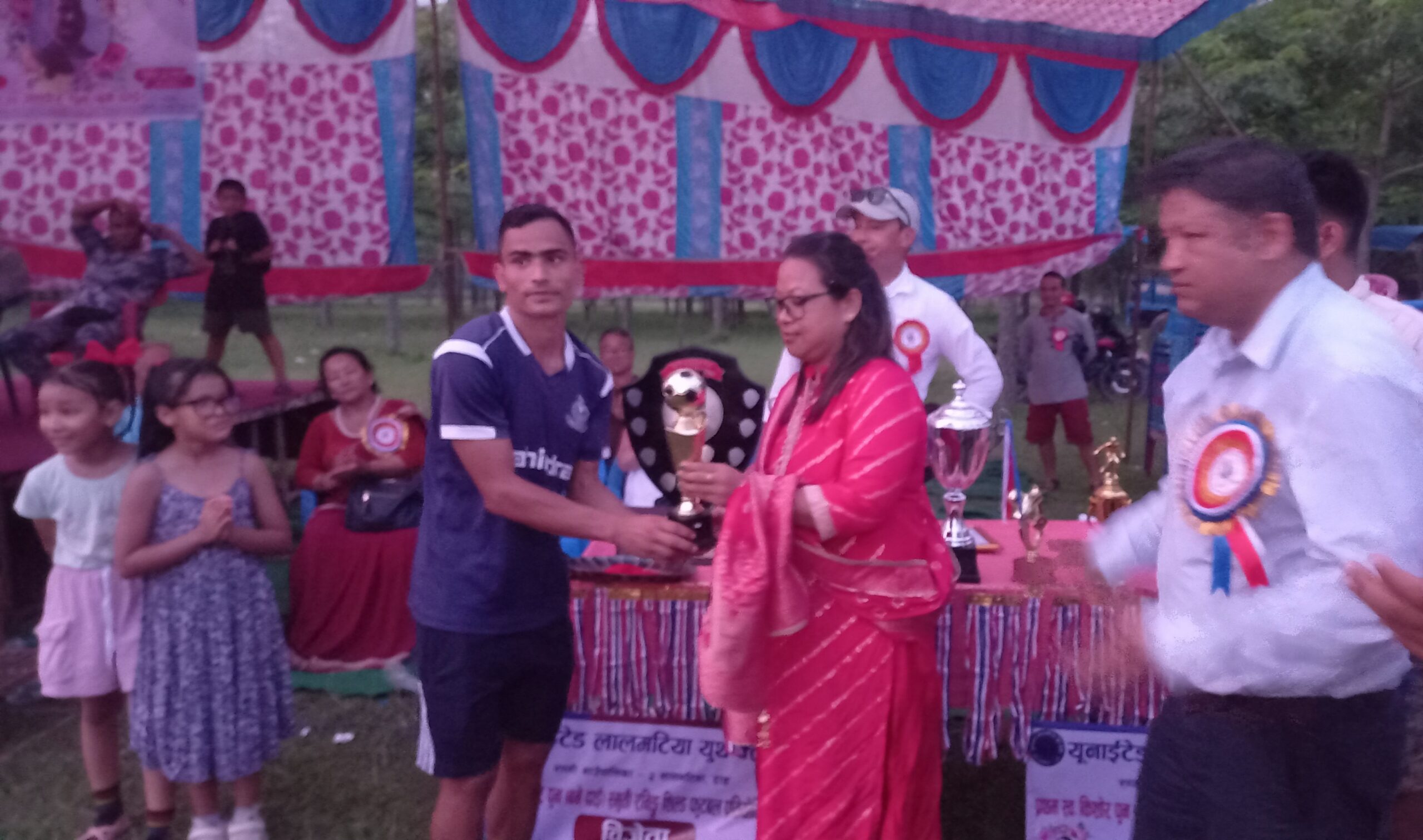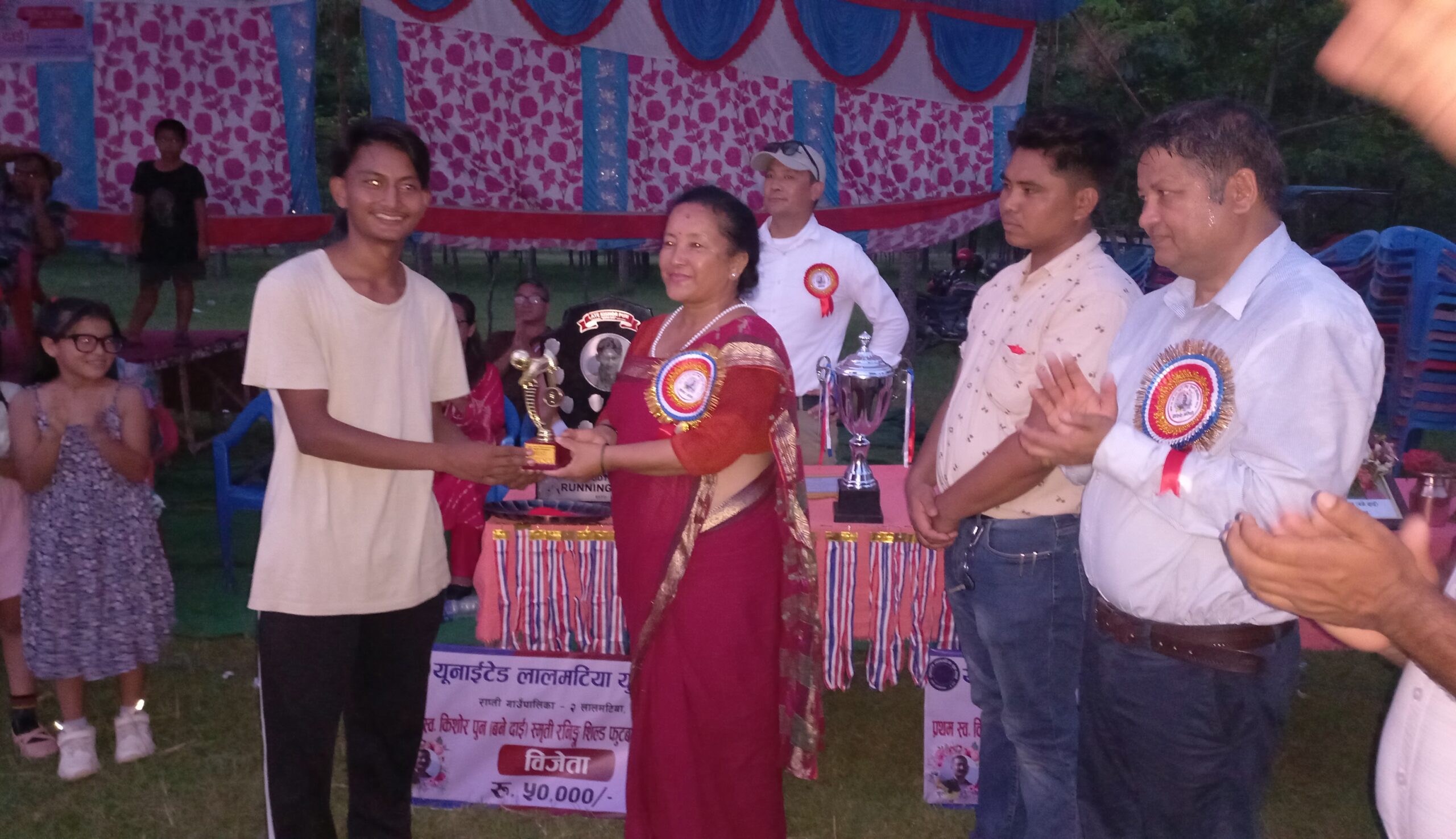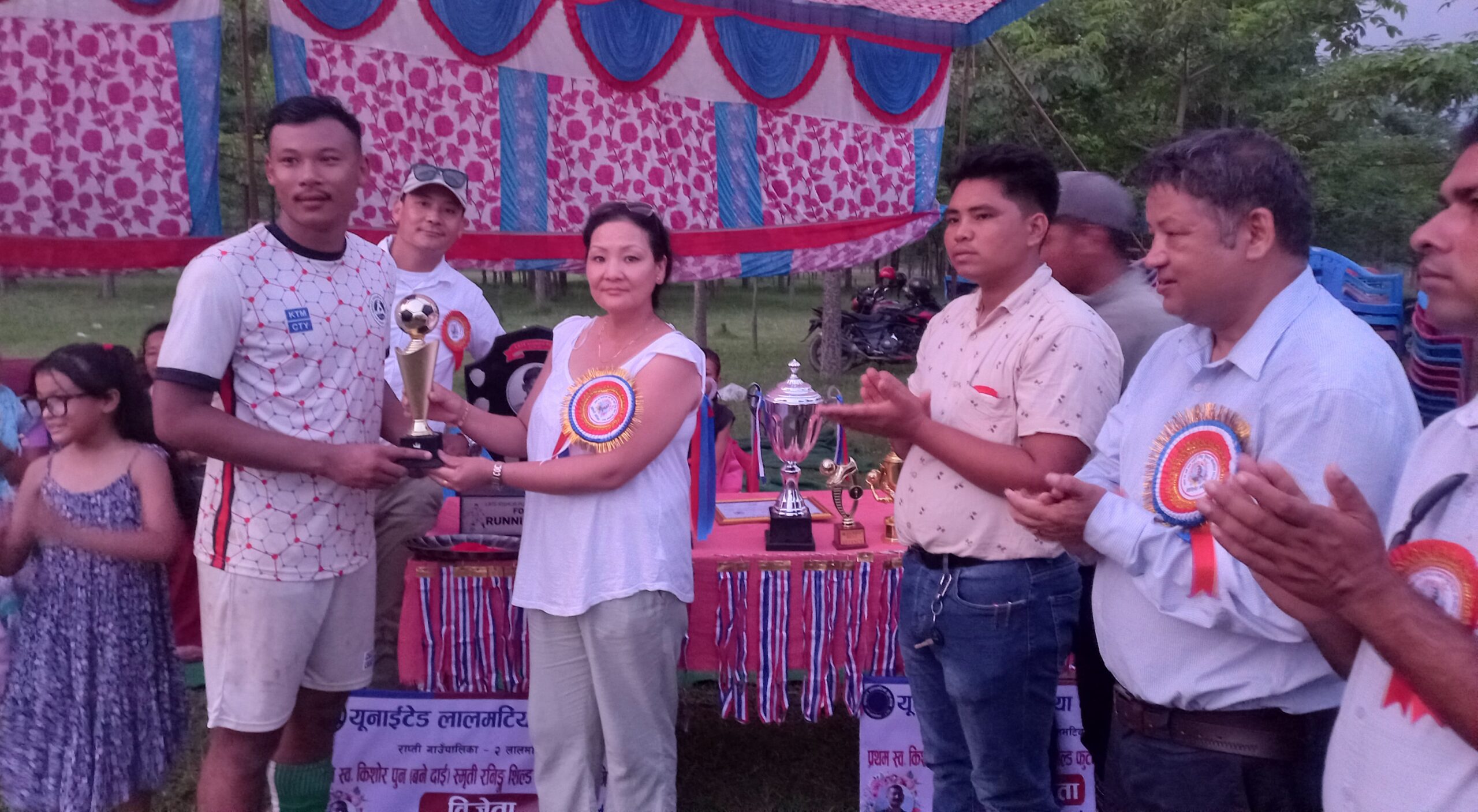 विजेता समुह युनाइटेड लालमटिया युथ क्लवलाई स्व. किशोर पुन (बने दाई) को आमाले ट्रफि प्रादन गर्नु भएको थियो । त्यसैगरी खेलाडीलाई एन्फाका केन्द्रीय उपाध्यक्ष दिर्घ बहादुर केसीले प्रमाण पत्र प्रदान गर्नु भयो भने वडा नं. २ का बडा अध्यक्ष पहलमान चौधरी र ३ का अध्यक्ष उमेश अधिकारीले टिका लगाई दिनुभएको थियो । बिजेता र उपबिजेता समुहलाई भाई तिलक पुनले रकम हसतान्तरण गर्नु भएको थियो ।