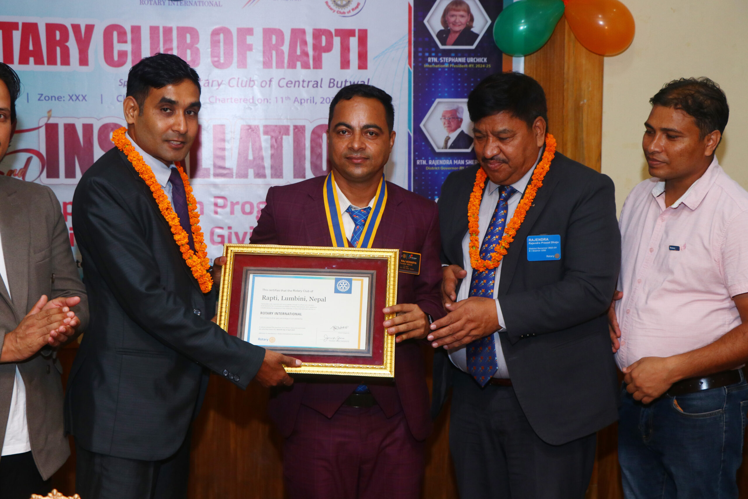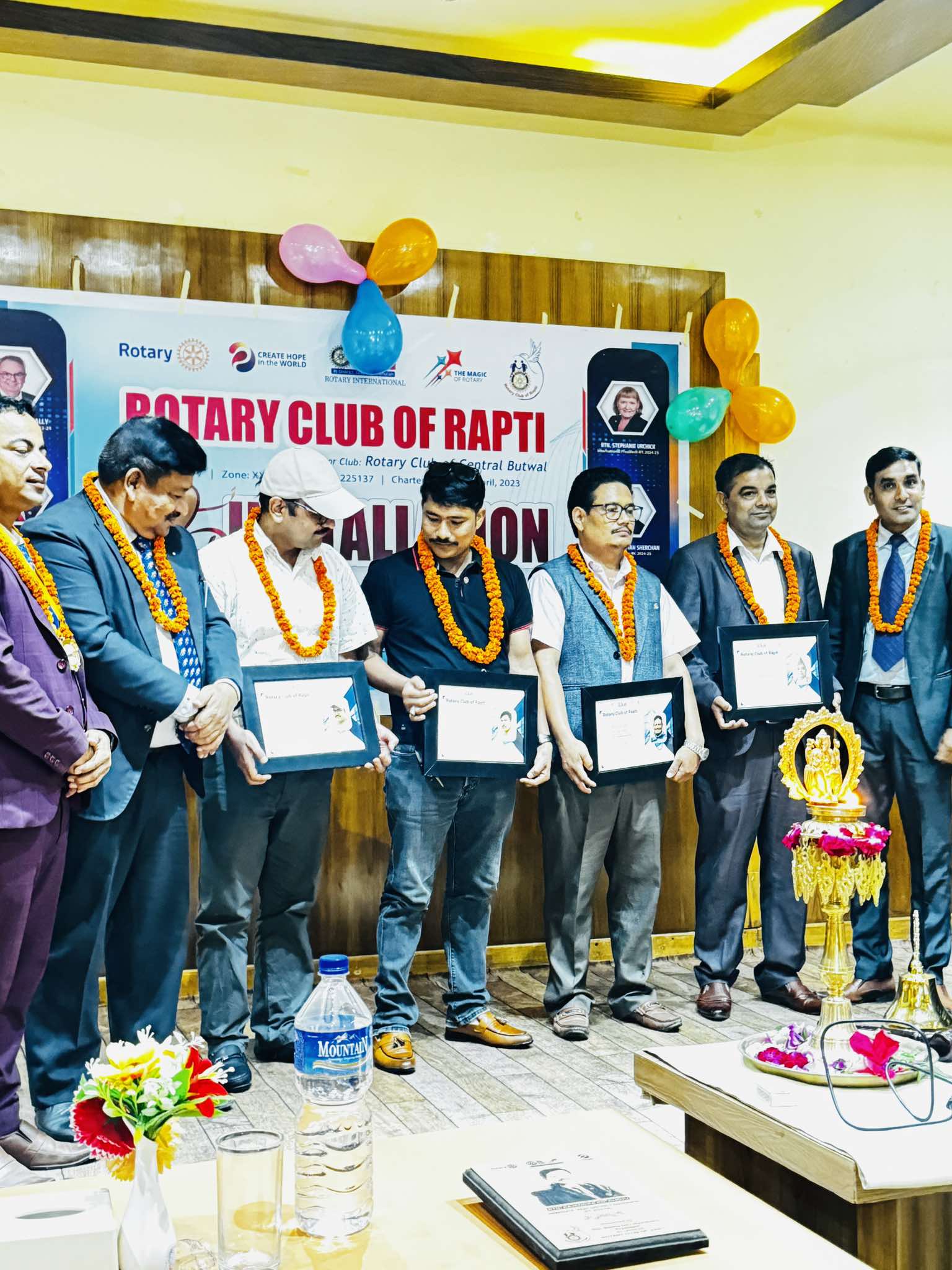 कार्यक्रममा राप्ती गाउँपालिकाका अध्यक्ष प्रकाश विष्टले रोटरी क्लब अफ राप्तीले सामाजिक उत्तरदायित्व बहन गर्दै शिक्षा, स्वास्थ्य, वातावरण, युवा सशक्तिकरण लगायतका क्षेत्रमा विशेष भुमिका खेल्न सफल भएकोमा प्रशंसा व्यक्त गरे । निस्वार्थ भावले युवाहरु मिलेर समाज सेवामा लाग्नु भएकोमा धन्यवाद दिदै स्थानिय सरकारको तर्फ रोटरीको हरेका कार्यमा सहयोग गर्ने प्रतिवद्धता समेत व्यक्त गरे । विगतदेखि गर्दै आएको कामको प्रशंसा गर्दै अबको नेतृत्वले थप रचनात्मक र प्रभावकारी काम गर्ने विश्वास व्यक्त गरे ।
