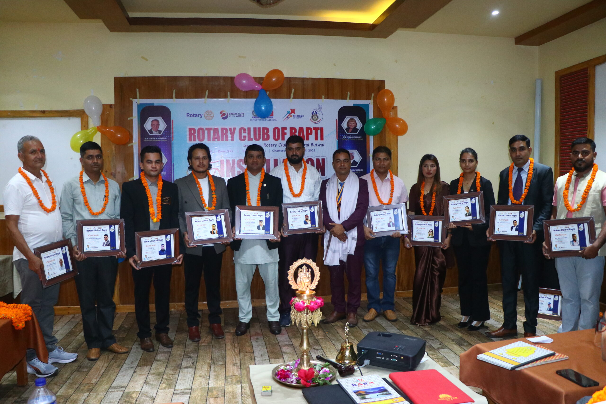 देउखुरी । रोटरी क्लब अफ राप्तीको दोस्रो पदस्थापन कार्यक्रम भालुवाङको होटल पौवामा सम्पन्न भएको छ । पदस्थापन कार्यक्रममा वर्ष २०२३/०२४ का अध्यक्ष बासुदेव न्यौपानेले वर्ष २०२४/०२५ का अध्यक्ष तपराज आचार्यलाई पद हस्तान्तरण गरे ।