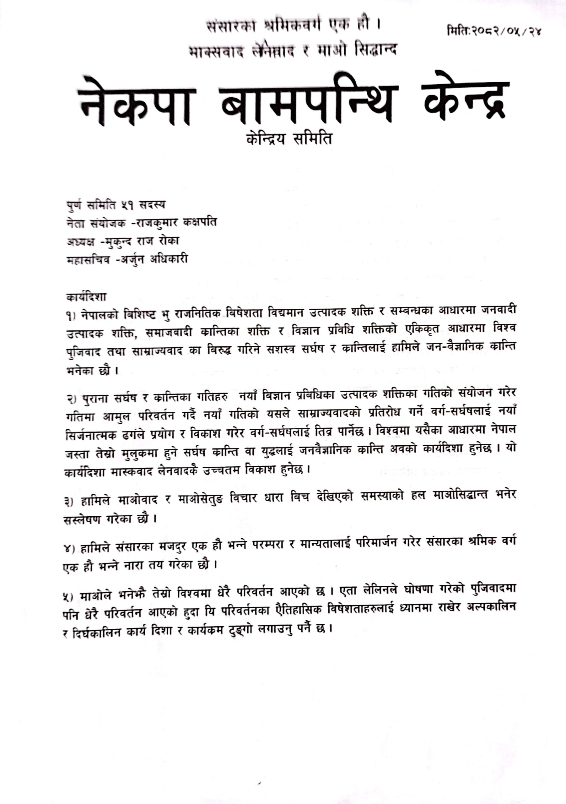 ५१ जना पूर्ण केन्द्रिय सदस्य रहेको पार्टी घोषण कार्यक्रममा अन्य कार्यसमिति सदस्यहरुको नाम भने सार्वजनिक गरिएको छैन । हाल लुम्बिनी प्रदेशका १२ वटै जिल्लालाई समेटेर कार्यसमिति बनाएको र पछि यसलाई सबै प्रदेशमा विस्तार गर्ने अध्यक्ष रोकाले बताए ।